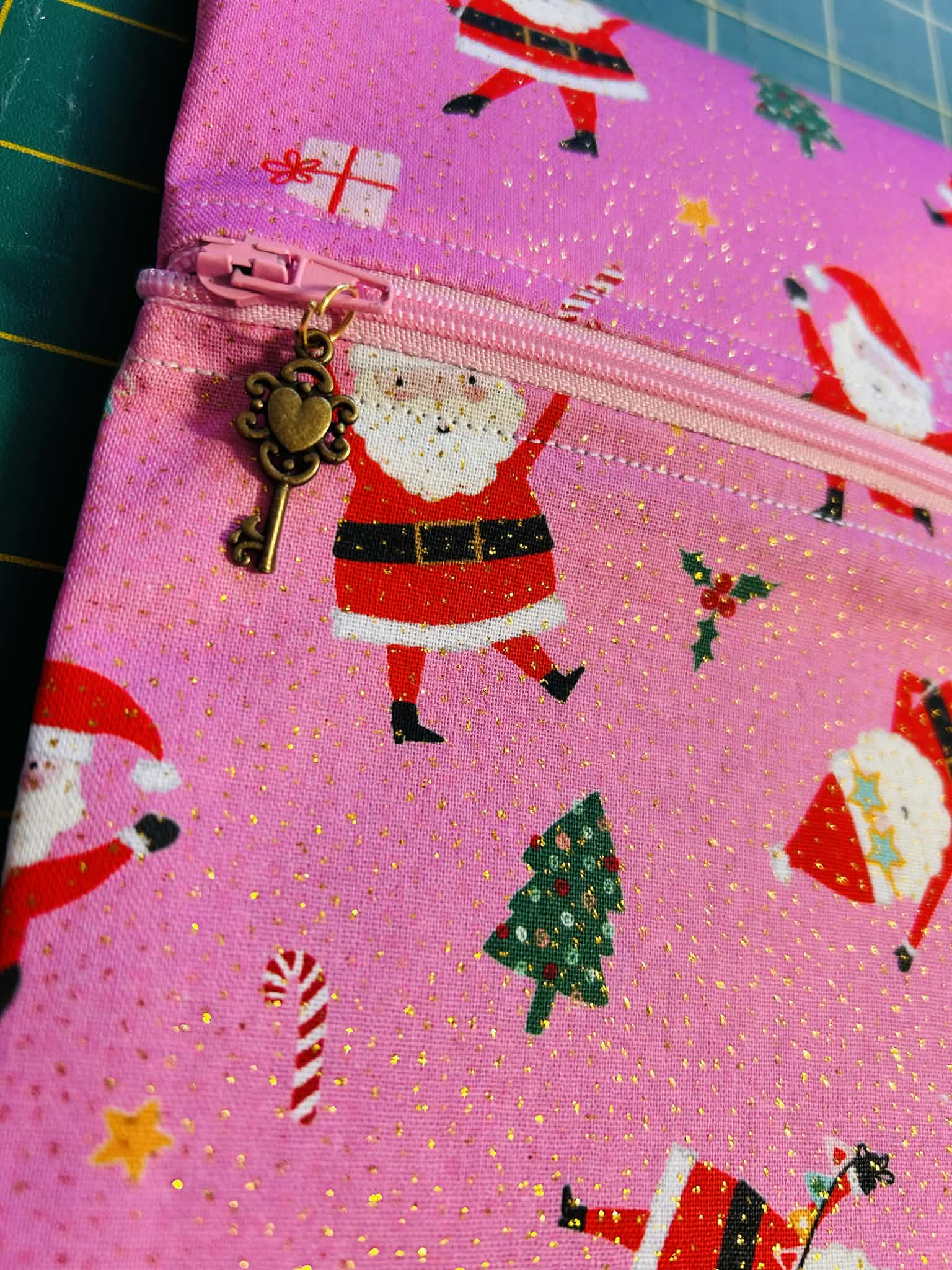 Santa On Pink (Gold Glitter) ~ Large (Pink Zip)