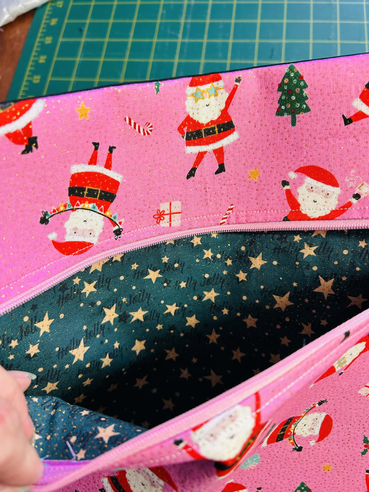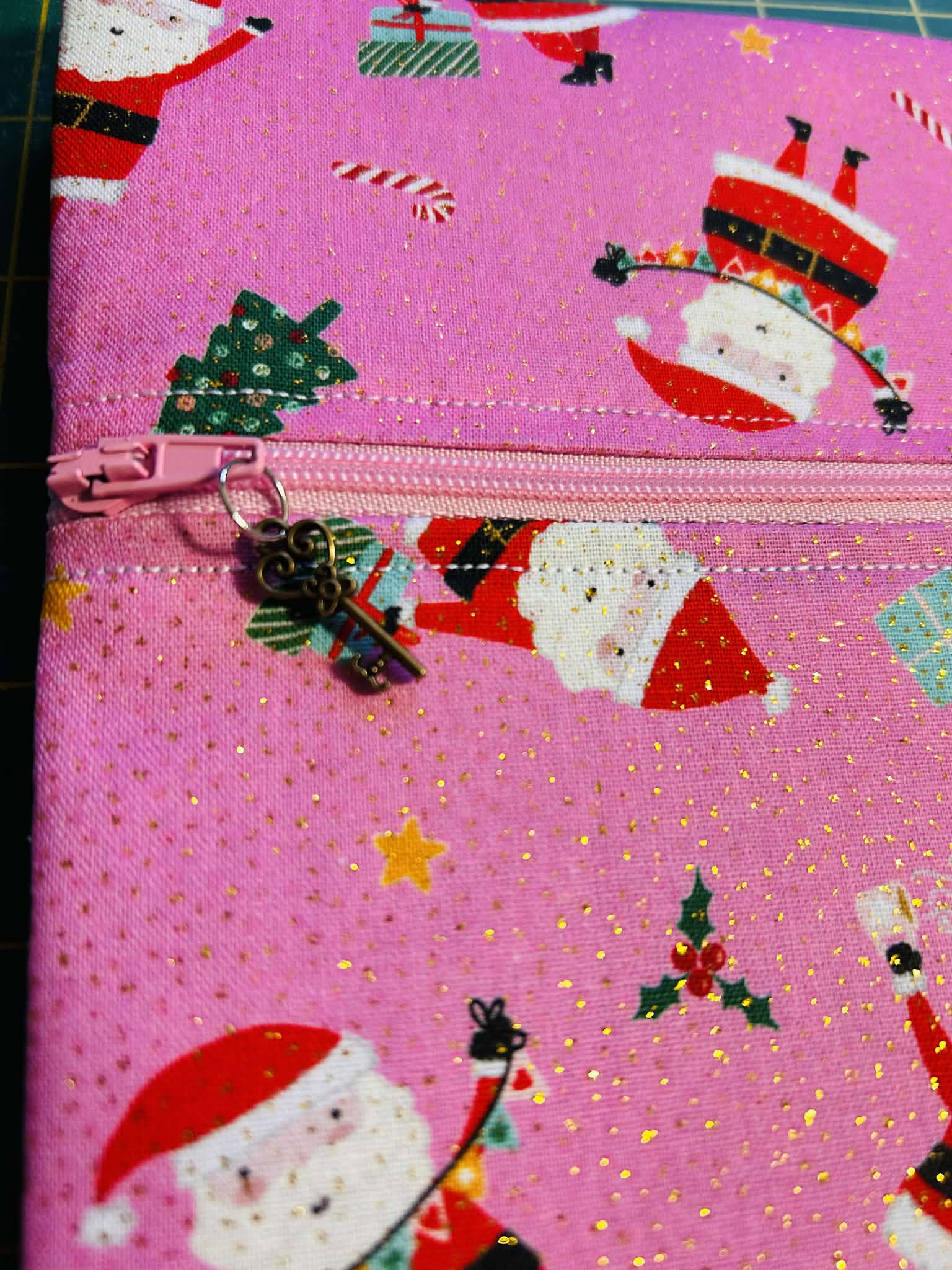 Santa on Pink (Gold Glitter) ~ Small