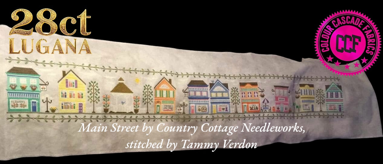 This is the most lovely warm orange yellow. A pale marigold on 25ct lugana. Like all CCFs the fabric is beautiful to stitch on - comes overlocked, is soft and supple, and smells beautiful. I love stitching on these fabrics.